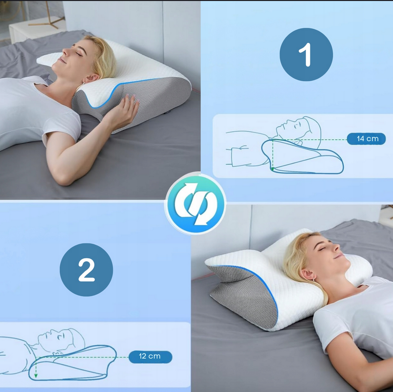 Poduszkę najlepiej dostosować tak, aby szyja i kręgosłup pozostawały w jednej linii. Jeśli preferujesz spanie na boku, wybierz wyższą część poduszki; jeśli na plecach — niższą. Pianka dopasowuje się automatycznie, więc wystarczy znaleźć komfortową pozycję.